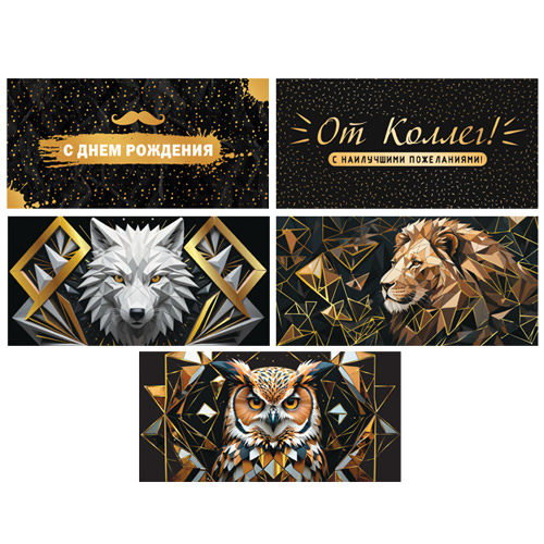 *КД-17579 Комплект конвертов для денег на склейке. Для дня рождения-2 (5 шт., золотая фольга)