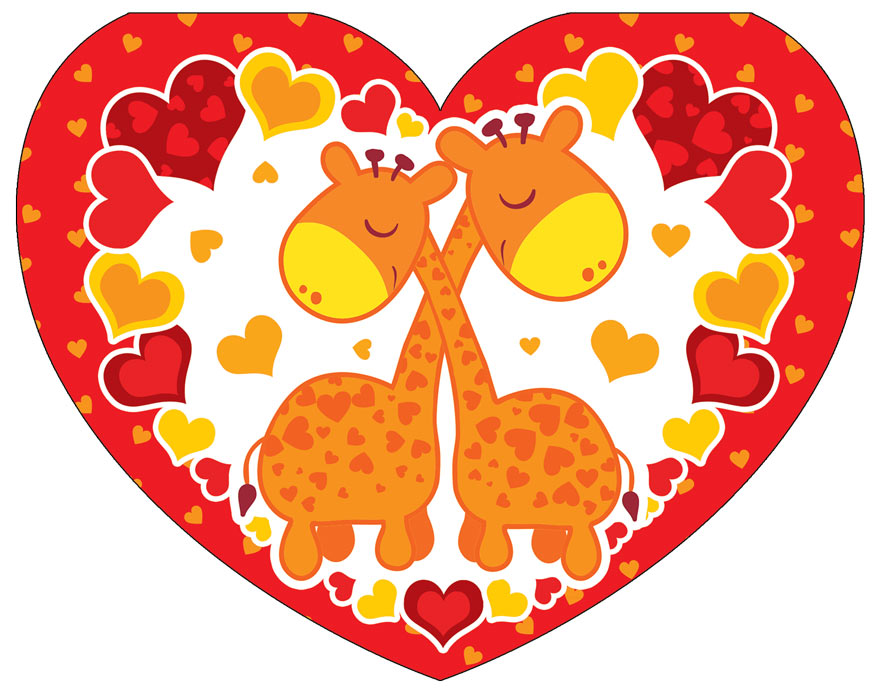 ВА-14391 Валентинка-сердечко большая. . Жирафы. Выборочный УФ-лак
