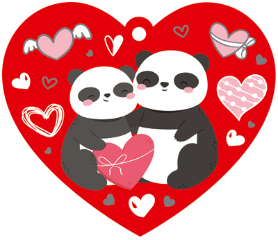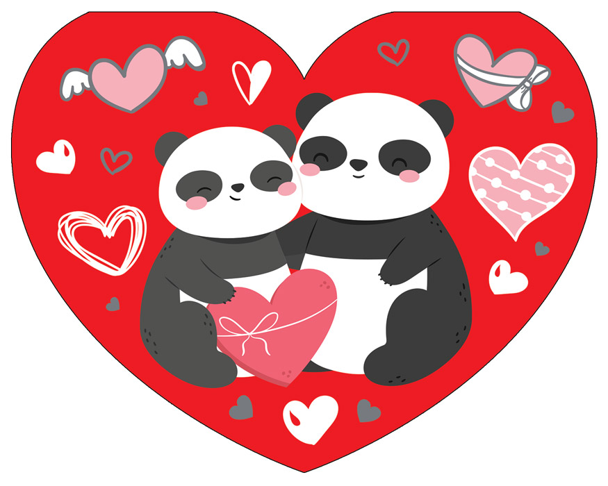 ВА-14392 Валентинка-сердечко большая. Панды. Выборочный УФ-лак