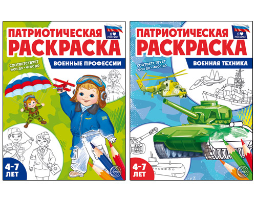*Комплект книг. Патриотическая раскраска: Военные профессии и Военная техника (2 раскраски, 4-7 лет)