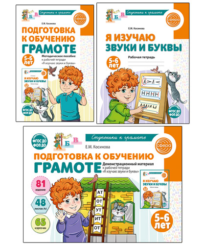 *Комплект. Подготовка к обучению грамоте детей 5-6 лет: рабочая тетрадь, дем. материал и мет.пособие