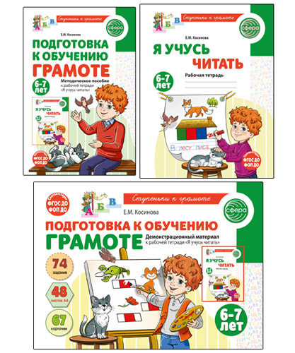 *Комплект. Подготовка к обучению грамоте детей 6-7 лет: рабочая тетрадь, дем. материал и мет.пособие