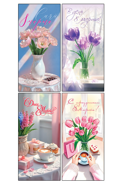 *КО-18053 Комплект открыток евроформата. Сияй 8 марта (4 шт.)