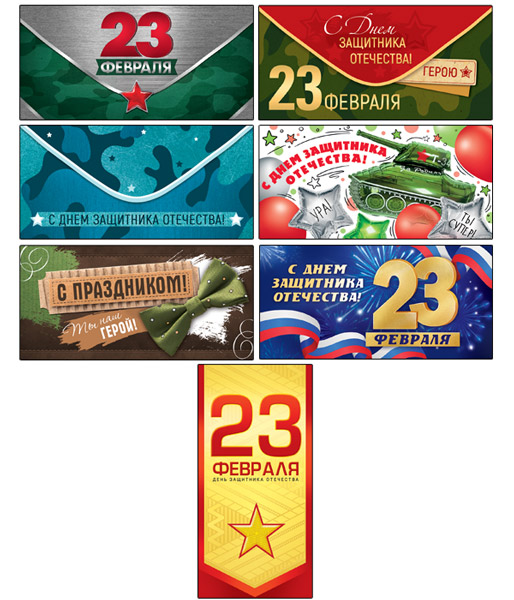 *КБ-17292 Набор мини-открыток на 23 февраля в ассортименте. 100 шт. в шоу-боксе: 10 видов по 10 шт.