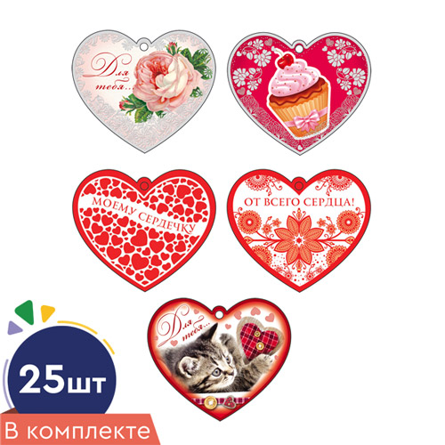 *КМ-17975 Комплект сердечек одинарных для украшения подарков. От наших сердец! (25 шт.: 5 видов по 5 шт.)