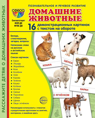 Дем. картинки СУПЕР Домашние животные. 16 демонстрационных картинок с текстом на обороте (учебно-методическое пособие с комплектом демонстрационного материала 173х220 мм, познавательное и речевое развитие)