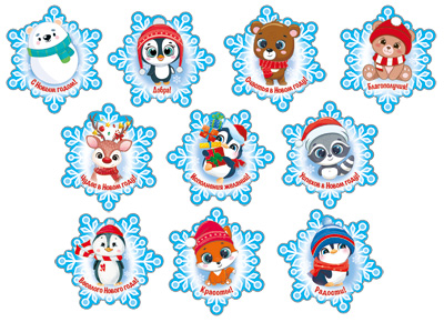 КМ-14807 Комплект украшений на скотче. Веселые снежинки (10 видов в комплекте) (Блестки)