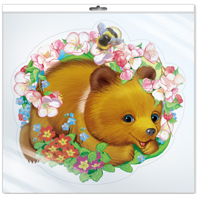 *ФМ1-13225 ПЛАКАТ ВЫРУБНОЙ А4 В ПАКЕТЕ. Медвежонок весенний (УФ-лак, в индивидуальной упаковке, с европодвесом и клеевым клапаном)