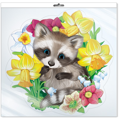 *ФМ1-13226 ПЛАКАТ ВЫРУБНОЙ А4 В ПАКЕТЕ. Енот весенний (УФ-лак, в индивидуальной упаковке, с европодвесом и клеевым клапаном)
