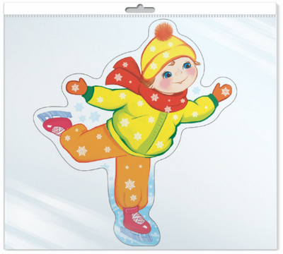 *ФМ-10079 ПЛАКАТ ВЫРУБНОЙ А4 В ПАКЕТЕ. Мальчик на коньках (блестки, в индивидуальной упаковке, с европодвесом и клеевым клапаном)