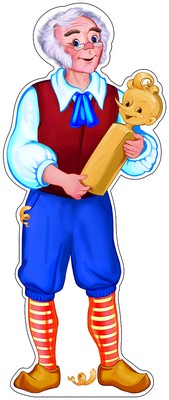 Ф-8343 Плакат вырубной А3. Папа Карло (с блестками и уф-лаком) - группа Персонажи сказок