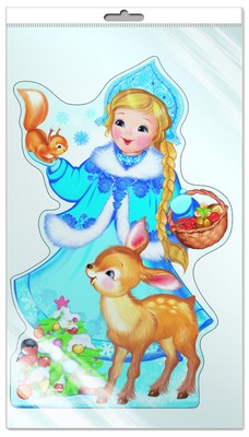 *Ф-8942 ПЛАКАТ ВЫРУБНОЙ А3 В ПАКЕТЕ. Снегурочка. Сюжет. Зверюшки (блестки, в индивидуальной упаковке, с европодвесом и клеевым клапаном)