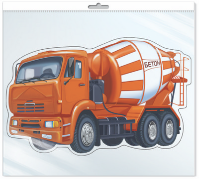 *ФМ1-10098 ПЛАКАТ ВЫРУБНОЙ А4 В ПАКЕТЕ. Машина бетономешалка (УФ-лак, в индивидуальной упаковке, с европодвесом и клеевым клапаном)