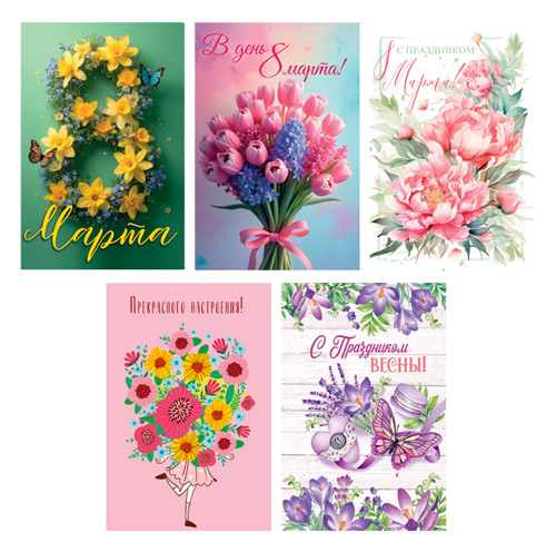 *КО-17235 Комплект открыток среднего формата. 8 марта (5 шт.)