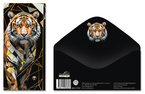 КДС2-17053 Конверт для денег на склейке. Тигр (без надписи, золотая фольга)