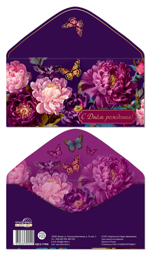 КДС-17925 Конверт для денег на склейке. С днём рождения! (женский, цветы)