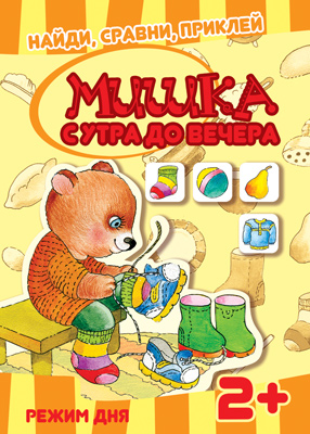 Найди, сравни, приклей. Мишка с утра до вечера: Режим дня. Многоразовые наклейки для детей от 2 лет