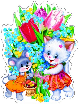 Ф-9179 Плакат вырубной А3. Зверушки с букетом (с блестками и уф-лаком) - группа Животные