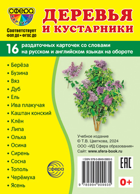 Дем. картинки СУПЕР Деревья и кустарники.16 раздаточных карточек с текстом на обороте (учебно-методическое пособие с комплектом демонстрационного материала 63х87 мм, познавательное и речевое развитие)