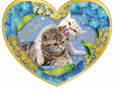 ВА-10111 Валентинка-сердечко большая. Котята (текст, золотая фольга)