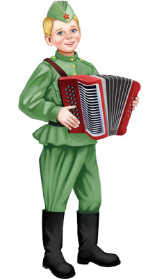 Ф-15572 Плакат вырубной А3. Мальчик-баянист в военной форме. Двухсторонний.- группа Профессии