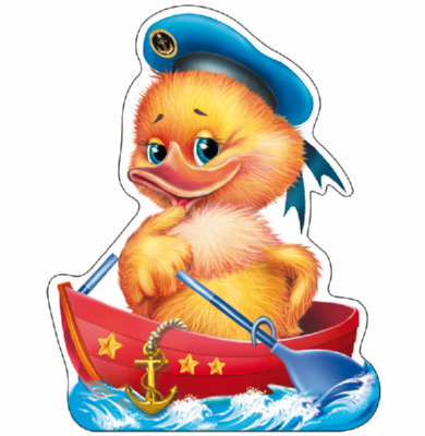 ФМ-10303 Плакат вырубной А4. Утенок в лодке (с блестками в лаке) - группа Птицы