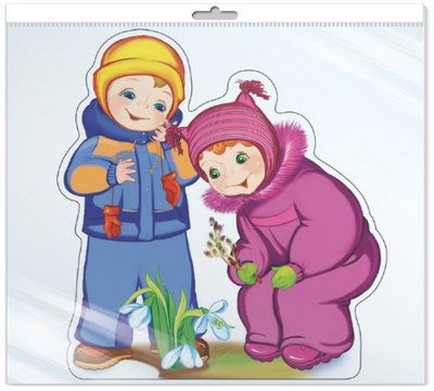 *ФМ-10329 ПЛАКАТ ВЫРУБНОЙ А4 В ПАКЕТЕ. Дети собирают подснежники (блестки, в индивидуальной упаковке, с европодвесом и клеевым клапаном)