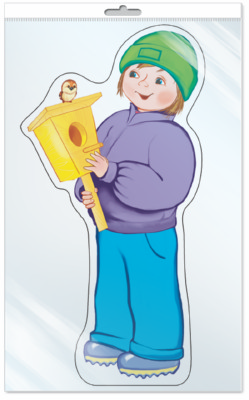 *ФМ-10332 ПЛАКАТ ВЫРУБНОЙ А4 В ПАКЕТЕ. Мальчик со скворечником (блестки, в индивидуальной упаковке, с европодвесом и клеевым клапаном)