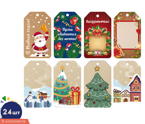 *БК-17066 Комплект бирок. Новогодние (24 шт: 8 видов по 3 шт.)
