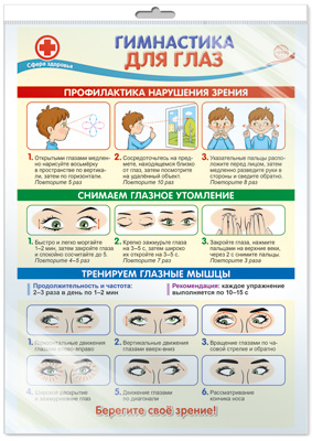 *ПО-14541 ПЛАКАТ А3 В ПАКЕТЕ. Гимнастика для глаз (в индивидуальной упаковке, с европодвесом и клеевым клапаном)