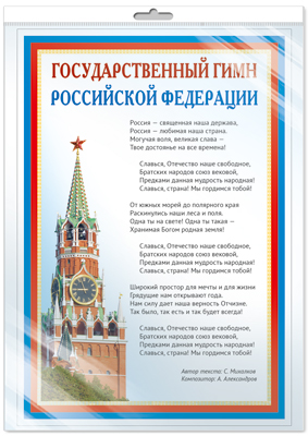 *ПЛ-14500 ПЛАКАТ А3 В ПАКЕТЕ. Государственный гимн РФ (в индивидуальной упаковке, с европодвесом и клеевым клапаном)