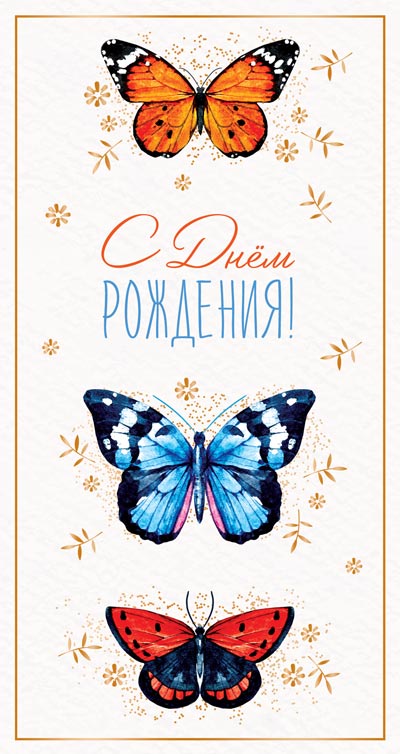 Ц-13187 Открытка евроформата. С Днем Рождения! (Золотая фольга, текст)
