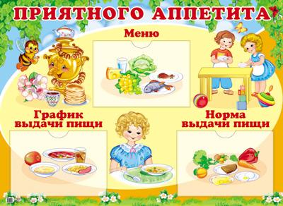 Стенд ПРИЯТНОГО АППЕТИТА (формат А2) 3 пласт. кармана 230х158 мм