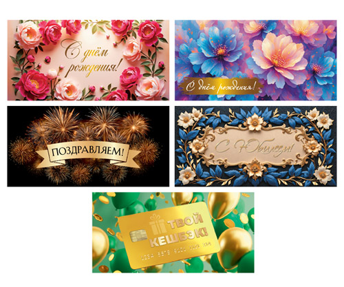 *КД-17916 Комплект конвертов для денег. С Днём рождения!! (5 шт.)