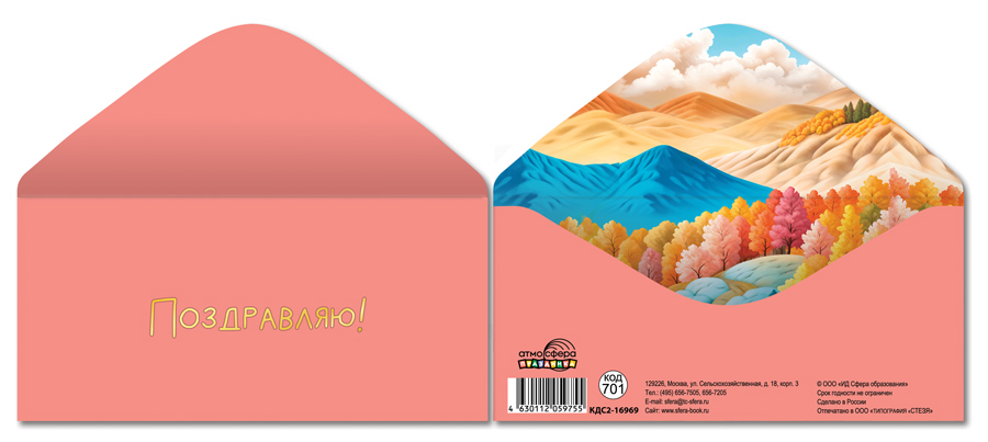 КДС-17046 Конверт для денег на склейке. Без надписи (Авкарель, парусник, горы)