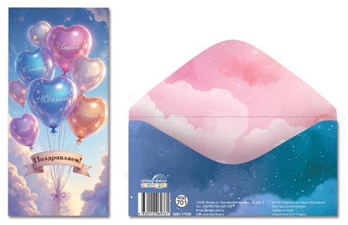 КДС-17526 Конверт для денег на склейке. Поздравляем! (унисекс, шарики)