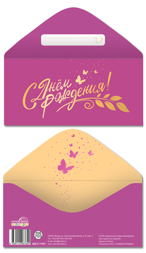 КДС2-17401 Конверт для денег на склейке. С Днем рождения! (золотая фольга, женский, однотонный)