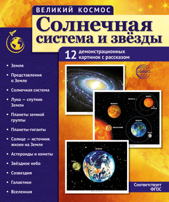Великий космос. Солнечная система и звезды. 12 демонстрационных картинок с текстом В ПАПКЕ (210x250 мм)