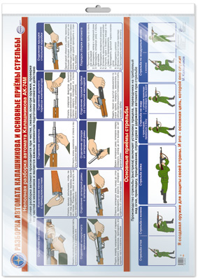 ПЛ-15774 Плакат А2 ЛАМИНИРОВАННЫЙ. Разборка автомата Калашникова и основные приемы стрельбы