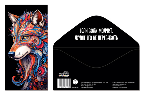КДС-17881 Конверт для денег на склейке. Без надписи (Волк)