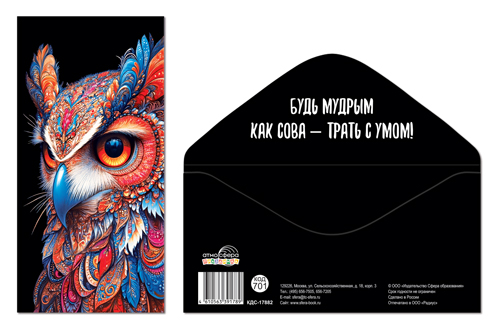 КДС-17882 Конверт для денег на склейке. Без надписи (Сова)