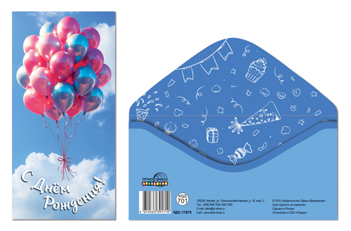КДС-17875 Конверт для денег на склейке. С днем рождения! (унисекс, шарики)