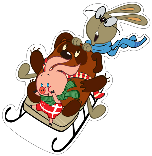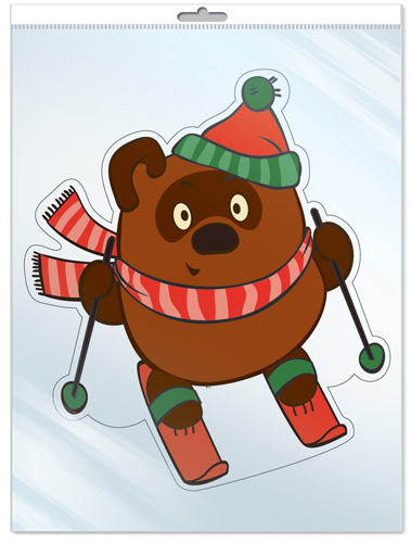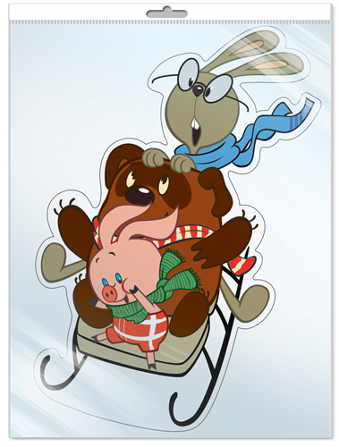 ФМ2-12186 Плакат вырубной А4. Винни-Пух, Пятачок и Кролик на санках из мультфильма Винни-Пух (с блестками в лаке)