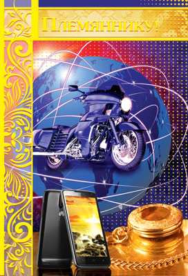 ЦР-6702 Открытка среднего формата Племяннику! Текст (золотая фольга)