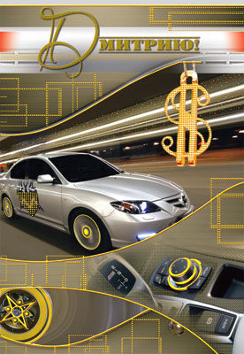 ЦИ-6706 Открытка среднего формата Дмитрию! Мужская. Текст (конгревное тиснение,золотая фольга)