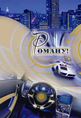 ЦИ-6707 Открытка среднего формата Роману! Мужская. Текст (конгревное тиснение,золотая фольга)