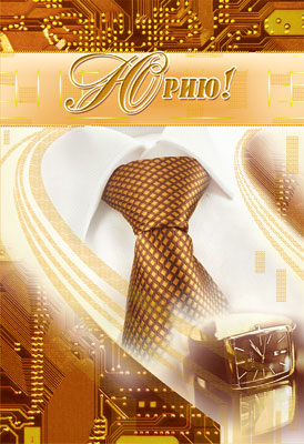 ЦИ-6712 Открытка среднего формата Юрию! Мужская. Текст (конгревное тиснение,золотая фольга)