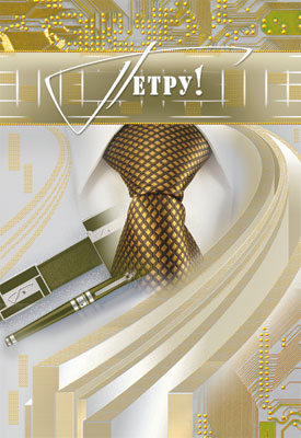 ЦИ-6708 Открытка среднего формата Петру! Мужская. Текст (конгревное тиснение,золотая фольга)