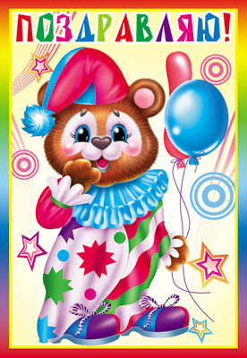 Д-8007 Открытка среднего формата Поздравляю! Детская. Текст (блестки в лаке, конгревное тиснение)