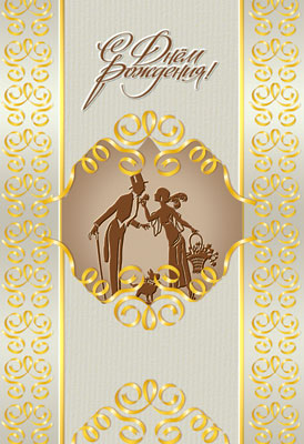Ц-6809 Открытка среднего формата С Днем Рождения! Текст (конгревное тиснение,золотая фольга)